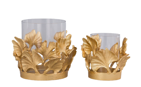 Flower Pillar Holder With Glass Closed Gold Small-Ht18Cm