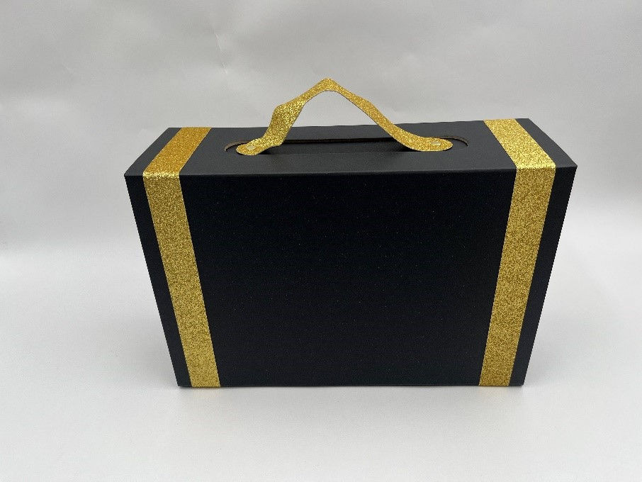 Black Trunk Box W/Gold Faux Leather Handle 30X20X10CM