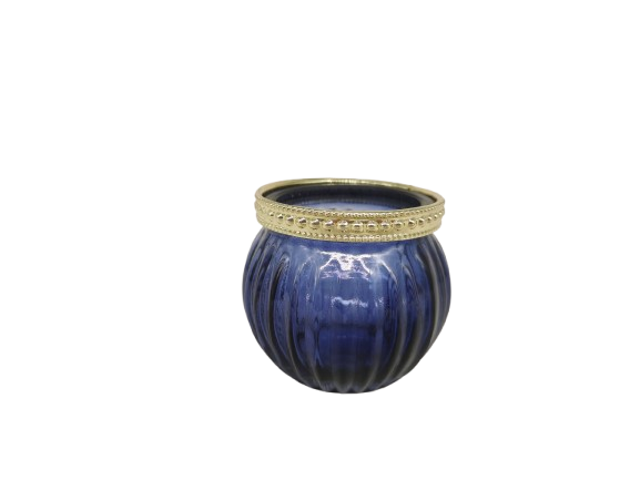 Navy Blue Glass Candle Holder With Gold Ring 6.5x5.5CM