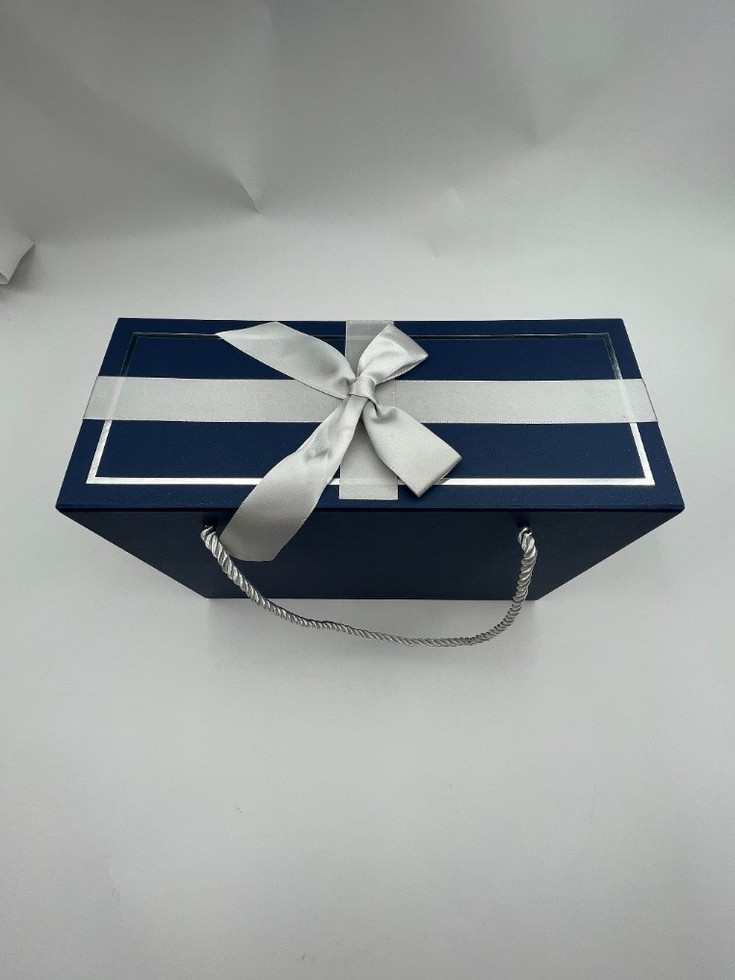 Navy Blue Box w/Silver Ribbon & Silver Rope 27 x 19 x 11CM