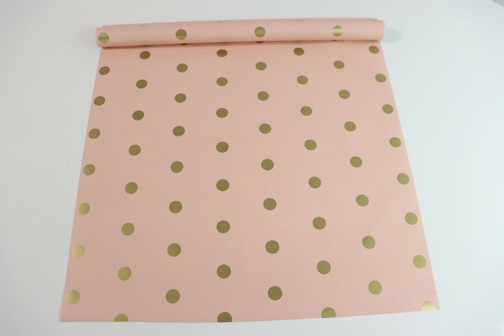 Polka Dots Wrapping Paper Roll Baby Pink W/Gold Dots-58Cmx10M