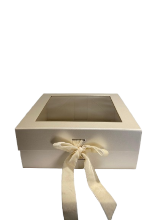 Square Window Beige Folding Box W/Beige Velvet Ribbon 25X25X10CM