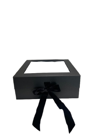Square Window Black Folding Box W/Velvet Black Ribbon 25X25X10CM